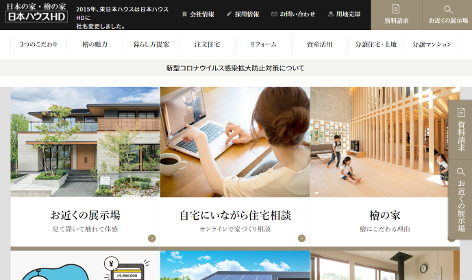 南東北から関西にかけて、店舗を展開しているハウスメーカー。耐久性にこだわりを持つヒノキヤグループの一員らしく、地震や台風に強い、安心して暮らせる住まいを提供してくれます。