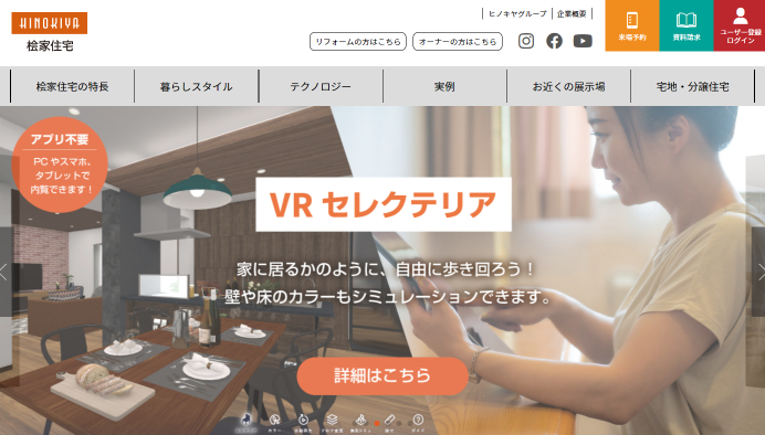 檜にこだわった注文住宅を建築するハウスメーカーです。血統書付きの檜を使用し、伝統工法に構造用合板の壁など新技術を組み合わせた耐震性能の高い工法を採用。地域の特性に合わせて高効率設備でZEHを目指します。
